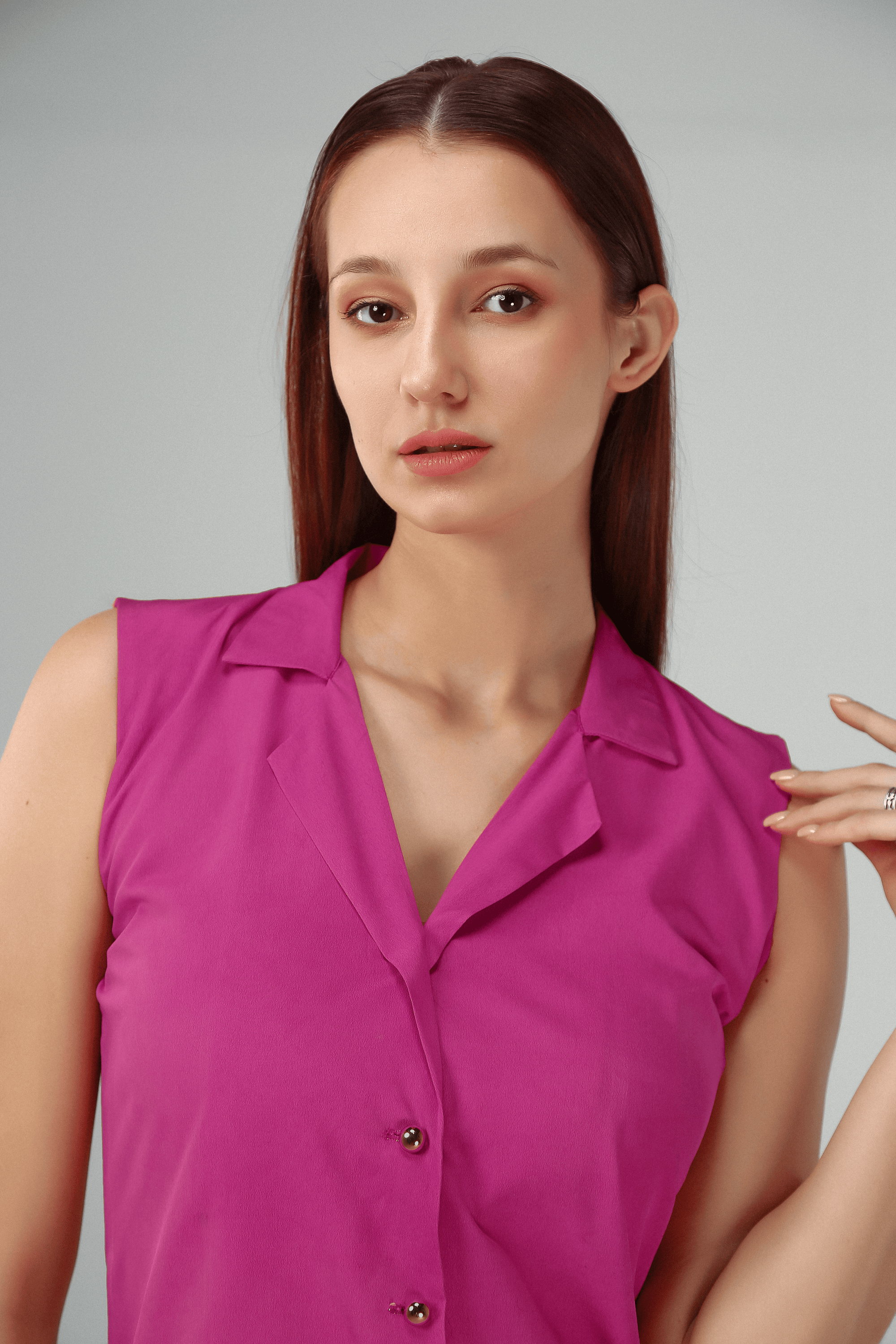 Sleeveless Co-ord set with a button-down top and high-waisted wide-leg pants, perfect for effortless casual or smart-casual style