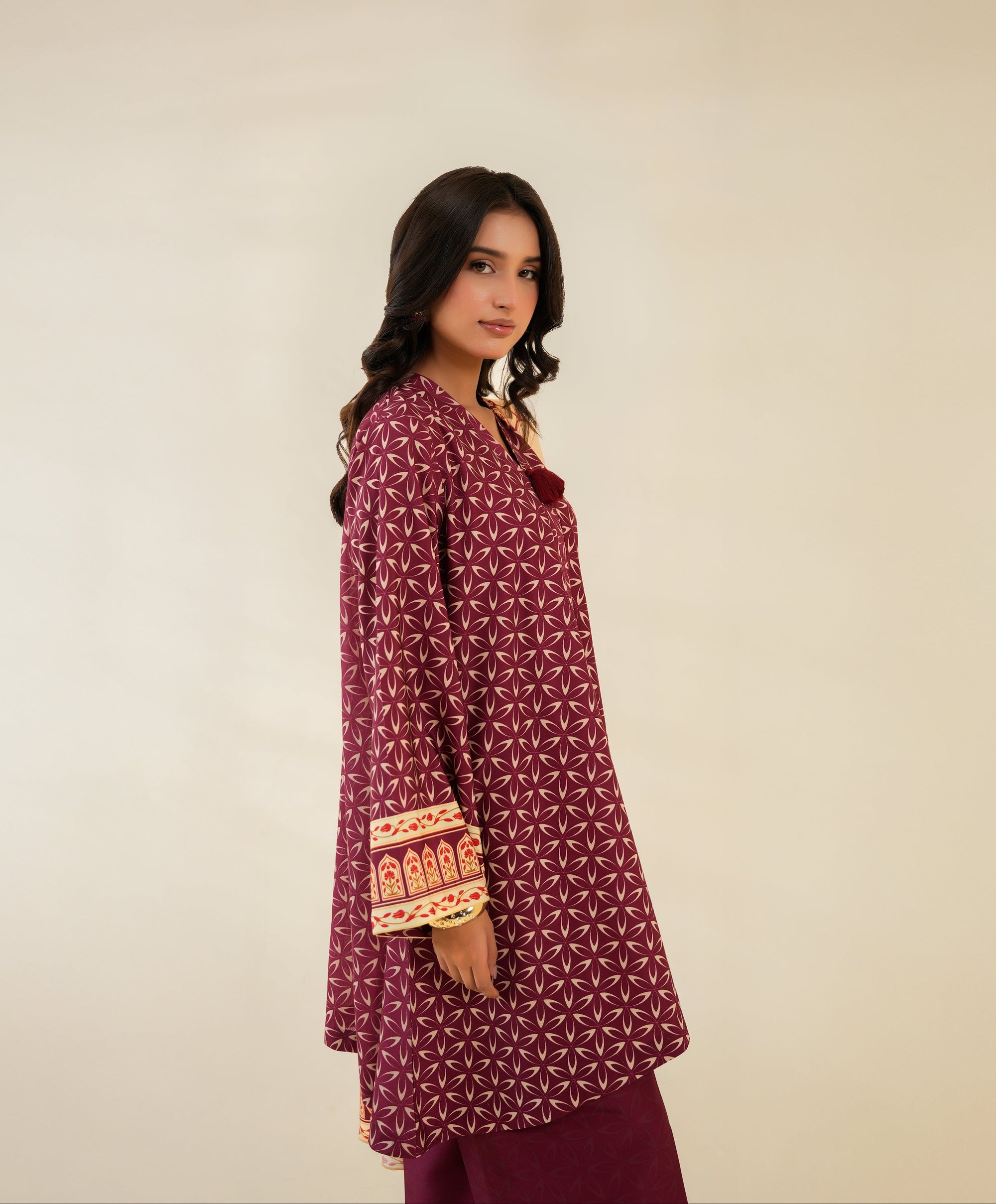 This 3 Piece printed suit with dupatta is crafted from premium fabric and features a geometric print inspired by vibrant cultural artistry. This bold magenta kurti and trouser set is ideal for the creative, confident woman seeking a comfortable yet striking outfit for casual outings and relaxed gatherings.